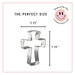 Confirmation Cross Cookie Cutter B1553, made of sturdy tin, Size: 4 3/8 in tall, 3.25 in wide, depth 7/8 in. Made in the USA.