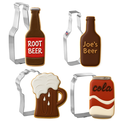 Made in the USABottle and Mug Cookie Cutter 4 Pc Set HS0465 - Includes a Soda Beer Can 4 in B1749, a Soda or Beer Bottle 6 in B1718, a Beer Mug 4 in B1653, a Bott...