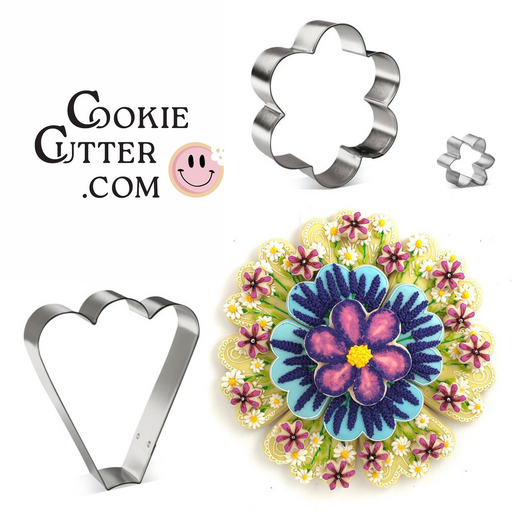 Made in the USAMother's Day Cookie Platter 4 Pc Set HS0454 - Includes: a Fan Three Bumps 4.5 in B0714, Clam 3 in B0713, Scallop Flower 3.75 in B1103, Mini Sunflow...