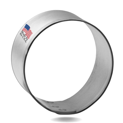 Made in the USARound Circle cookie cutter, made of sturdy tin, Size 2.5 in. tall. Depth 7/8 in., Color silverTags: Geometric, Shapes, Round, Circle