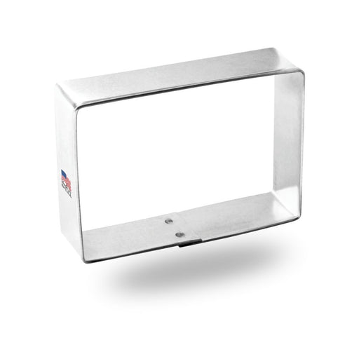 Made in the USARectangle cookie cutter, made of sturdy tin, Size 4 in by 3.5 in. Depth 7/8 in, made in the USA. Tags: Geometric, Shapes, Rectangle