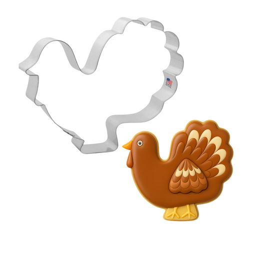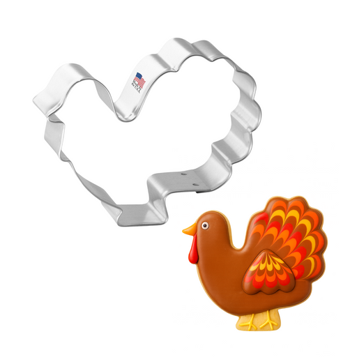 Made in the USATurkey cookie cutter, made of sturdy tin, Size 3.5 in. Depth 7/8 in., Color silver, made in USA TAGS Turkey, Fall, Farm, Thanksgiving