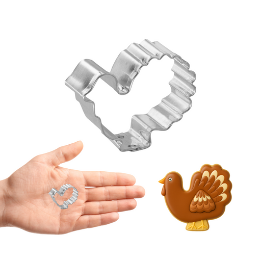 Made in the USAMiniature Turkey cookie cutter, made of sturdy tin, Size 1.75 in., Depth 3/4 in., Color silver TAGS Turkey, Fall, Farm, Thanksgiving